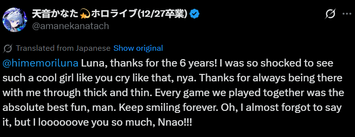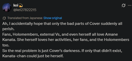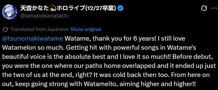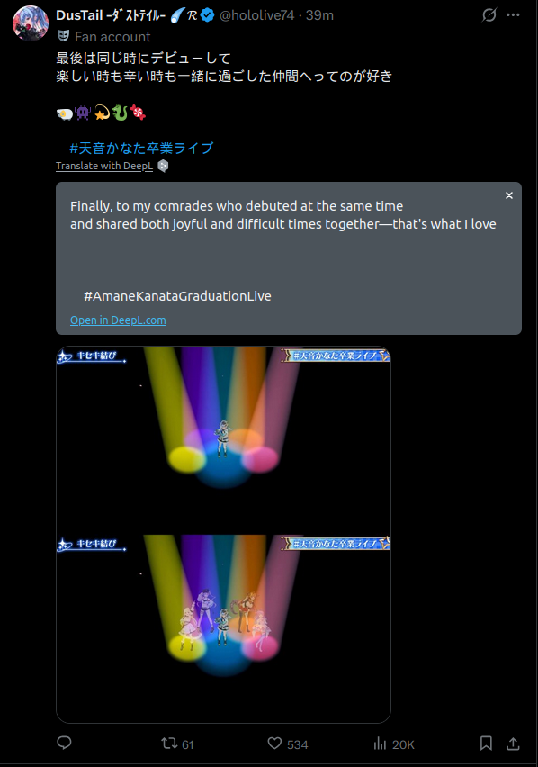 >Suisei is the holo who hasn't said anything publicly about Kanata