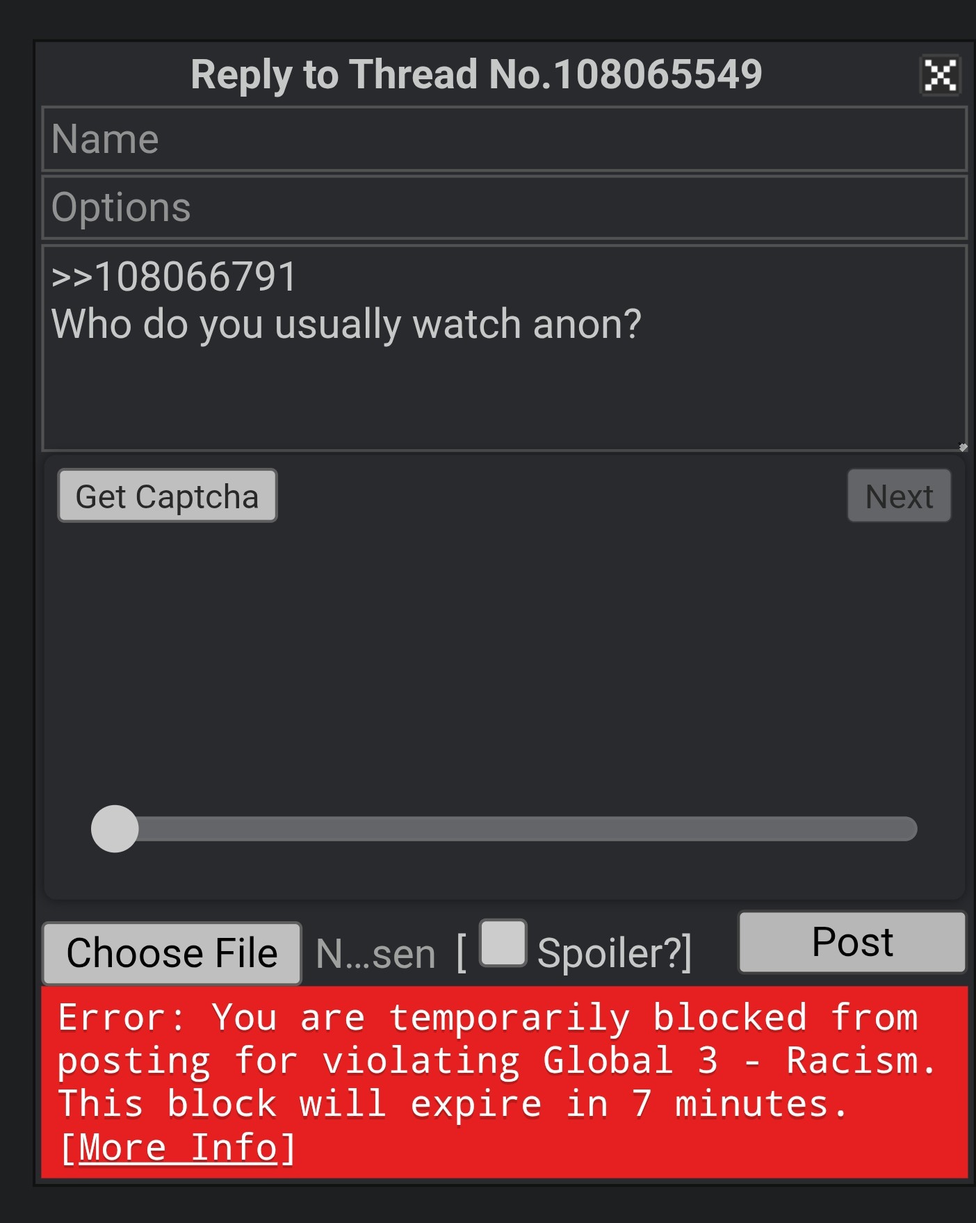 >Get banned for destroying the antis>Anti posting begins immediately afterFuck you brown jannyLmaoCome at me bro