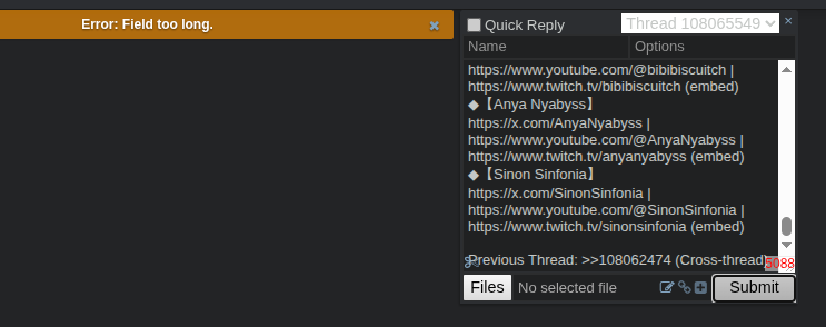 >>108067489the original form says we're at 5438 chars but quick reply says 4734 so who knows