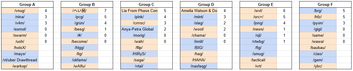 >>108070466>1:20 - Group E :: /vtwbg/ vs /orc+/we'll be on in 30 minutes