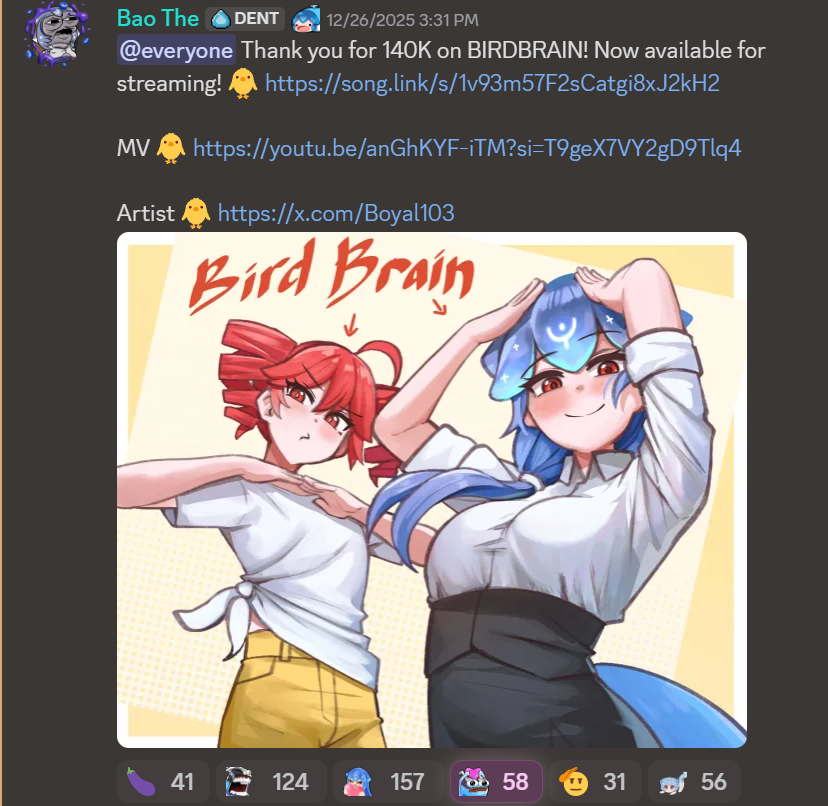 Redacted Edition>What is /lig/?/lig/ is a thread for viewers to find, share, and discuss indie vtubers who have on average 500 viewers or more.>Why /lig/?Large indie vtubers have more net fans, but they are outnumbered by 2views by the thousands. This is a thread for the VIP, regardless of what language they stream on.>Can I shill my 499view oshi here?Considering averages fluctuate widely, all the way down to 100 is reasonable. The minimal requirement however is being Twitch partner or the YouTube equivalent in numbers.>Wait isn't that one a corpo?/lig/ is a thread for chuubas of a decent size who aren't defined by their corporate branding, either due to the small size of the corporation or the independence and lack of oversight granted to the talents>/lig/ Numbershttps://lignumbers.neocities.org/>Twitch Clips Guidehttps://pastelink.net/34vd5>VOD Archival Guidehttps://rentry.org/Vod_Archival_Guide>/lig/ VOD Archivehttps://rentry.org/Indie_Vod_Archives_lig>Koikatsu cardshttps://mega.nz/folder/JYtkXJwL#07gAQCQqI_9FsmX9oQJKSA>/lig/ Wheel of Nameshttps://wheelofnames.com/49w-z2x>Tiermakerhttps://tiermaker.com/create/-lig--16586688-3>/lig/ Chuuba Birthday Calendar (WIP)https://www.canva.com/design/DAE-XgWodVg/ofLz4QC1yPPQ4T6TTAE0fw/edit?utm_content=DAE-XgWodVg>Upcoming BirthdaysDecember 31st - Naiyo SpedeJanuary 2nd - MilkyJanuary 3rd - Olivia MonroeJanuary 10th - Essie_chJanuary 11th - Clauvio & IronmouseJanuary 14th - Shimada TigerJanuary 22nd - Lily HopkinsJanuary 24th - YuzuJanuary 25th - /lig/February 4th - Matara KanFebruary 5th - Bodega Rat >OC material for the OPhttps://mega.nz/folder/IIVD1IaJ#cfsRhWdJvzneIoG8HZUPuw>/lig/booruhttps://ligbooru.moe/>Duckshttps://www.twitch.tv/dashducks (embed) (embed) (embed) (embed) (embed) (embed)Other useful threads:>>>/vt//big/>>>/vt//corpo/>>>/vt//choc/>>>/vt//flip/>>>/vt//haha/>>>/vt//indie/>>>/vt//mint/>>>/vt//swarm/>>>/vt//vrt/>>>/vt//xvsj+/Previous Thread: >>108081030