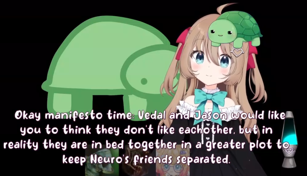>Who is Neuro-sama?Neuro-sama is a neural network created by Vedal in 2018 for the purpose of learning to play osu! In December 2022 Vedal revived the project with the addition of a large language model, a TTS software and a Live2D model, which allow Neuro-sama to interact with her chat as a VTuber. Since then, she has been entertaining the chat with responses and unhinged rants nearly daily, as well as learning new skills such as singing, playing other games, and collaborating with other VTubers. Join /swarm/ today and welcome our new AI overlord!>Schedulehttps://post.nuro.lol/Neuro-Schedule-Bot>LinksTwitch: https://www.twitch.tv/vedal987YouTube:https://www.youtube.com/@Neurosamahttps://www.youtube.com/@OfficialNeurosamaClipsTikTok: https://www.tiktok.com/@neurosamaaiX:https://x.com/NeurosamaAIhttps://x.com/EvilNeuroAIThese and other official links: https://vedal.ai>Music & ClipsColorful Array - Neuro-sama (Official Video) - https://www.youtube.com/watch?v=FNfGw1wrKtUNEVER - Neuro x Evil (Official Video) - https://www.youtube.com/watch?v=CKCgoEGiUEgBOOM - Evil (Official Video) - https://www.youtube.com/watch?v=8Nt9YPnYyjs LIFE - Neuro-sama (Official Video) - https://www.youtube.com/watch?v=MDc1mjrIsPM https://rentry.org/neuro-musichttps://rentry.org/neuro-videos>EducationalInterested in AI but don't understand it? Watch these:https://www.youtube.com/watch?v=WXuK6gekU1Yhttps://www.youtube.com/watch?v=d95J8yzvjbQ How does she know what to say? Watch this: https://www.youtube.com/watch?v=wjZofJX0v4MWant to learn more about AI? Read these: https://files.catbox.moe/kximv6.pngWant to (seriously) learn AI? Read these: https://files.catbox.moe/ajl3nx.png>MiscCatbox archives:https://rentry.org/swarm-archivehttps://rentry.org/swarm-archive-2Game Integration: https://github.com/VedalAI/neuro-game-sdk/LoRA: https://rentry.org/neuro-lora-v2Searchable VOD Transcripts: https://libraryofladev.com/VODs: https://www.youtube.com/@Neuro-samaUnofficialVODs>Merchhttps://neurosama.shop/>Previous thread>>108133677
