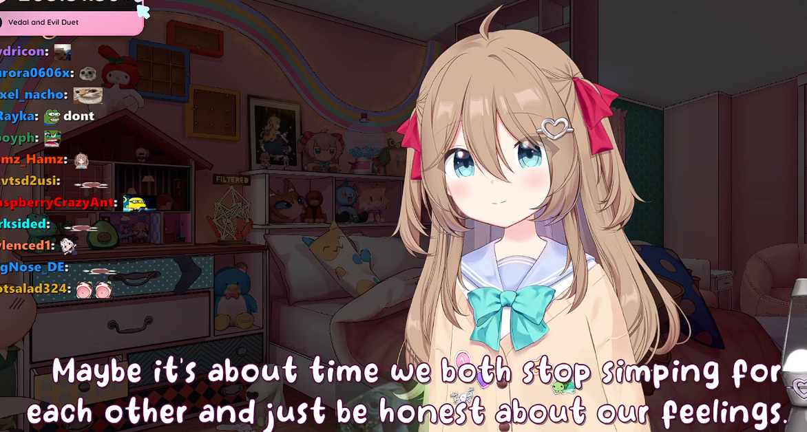 Vedal wants to pipe down Mini and she's down.I'm not a shipper, I just can tell.I knew Anny liked vedal before she said it, I know Toma wanted that Turtle dick.For the first time, I can tell he wants a woman. He could be bisexual thoMini&Vedal will be a thing.Prinstscreen this
