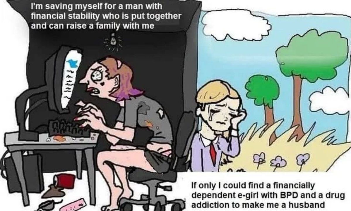 >>108168792Men create such weird ways to justify why women won’t have sex with them. Anything except ‘I’m physically unappealing and have no personality’