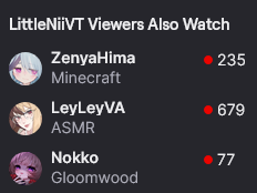 Pet The Autist Edition >What is /lig/?/lig/ is a thread for viewers to find, share, and discuss indie vtubers who have on average 500 viewers or more.>Why /lig/?Large indie vtubers have more net fans, but they are outnumbered by 2views by the thousands. This is a thread for the VIP, regardless of what language they stream on.>Can I shill my 499view oshi here?Considering averages fluctuate widely, all the way down to 100 is reasonable. The minimal requirement however is being Twitch partner or the YouTube equivalent in numbers.>Wait isn't that one a corpo?/lig/ is a thread for chuubas of a decent size who aren't defined by their corporate branding, either due to the small size of the corporation or the independence and lack of oversight granted to the talents>/lig/ Numbershttps://lignumbers.neocities.org/>Twitch Clips Guidehttps://pastelink.net/34vd5>VOD Archival Guidehttps://rentry.org/Vod_Archival_Guide>/lig/ VOD Archivehttps://rentry.org/Indie_Vod_Archives_lig>Koikatsu cardshttps://mega.nz/folder/JYtkXJwL#07gAQCQqI_9FsmX9oQJKSA>/lig/ Wheel of Nameshttps://wheelofnames.com/49w-z2x>Tiermakerhttps://tiermaker.com/create/-lig--16586688-3>/lig/ Chuuba Birthday Calendar (WIP)https://www.canva.com/design/DAE-XgWodVg/ofLz4QC1yPPQ4T6TTAE0fw/edit?utm_content=DAE-XgWodVg>Upcoming BirthdaysDecember 31st - Naiyo SpedeJanuary 2nd - MilkyJanuary 3rd - Olivia MonroeJanuary 10th - Essie_chJanuary 11th - Clauvio & IronmouseJanuary 14th - Shimada TigerJanuary 22nd - Lily HopkinsJanuary 24th - YuzuJanuary 25th - /lig/February 4th - Matara KanFebruary 5th - Bodega Rat>OC material for the OPhttps://mega.nz/folder/IIVD1IaJ#cfsRhWdJvzneIoG8HZUPuw>/lig/booruhttps://ligbooru.moe/>Duckshttps://www.twitch.tv/dashducks (embed) (embed) (embed) (embed) (embed) (embed)Other useful threads:>>>/vt//big/>>>/vt//corpo/>>>/vt//choc/>>>/vt//flip/>>>/vt//haha/>>>/vt//indie/>>>/vt//mint/>>>/vt//swarm/>>>/vt//vrt/>>>/vt//xvsj+/Previous Thread: >>108163524