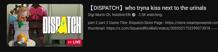 >>108174741>Basically only emotes during Dispatch segments.>Cut scene starts.>Suddenly starts yapping about who knows what realizing she's talking over the story so she starts talking faster.Why Mori, why....