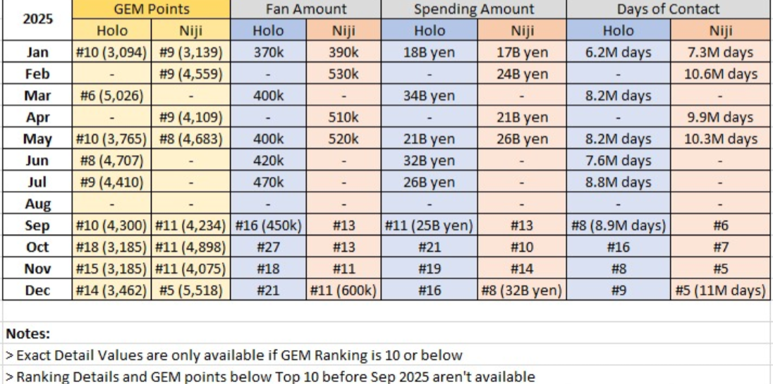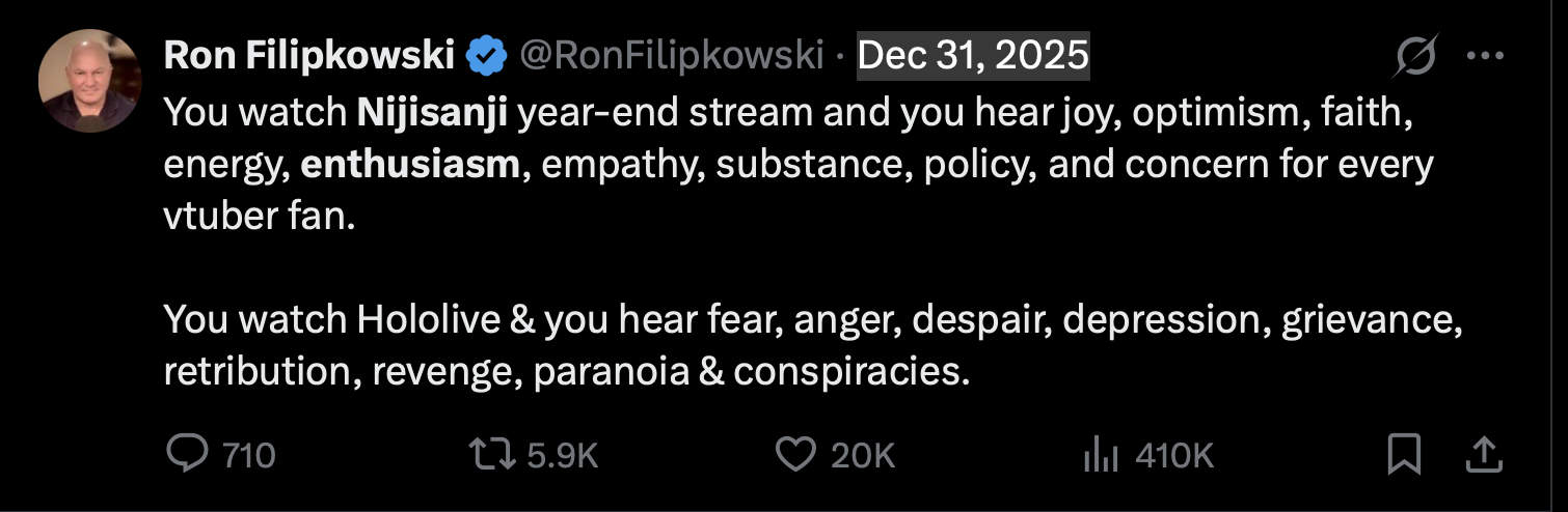 2025 is the year where Nijisanji defeated hololive in literally all metrics