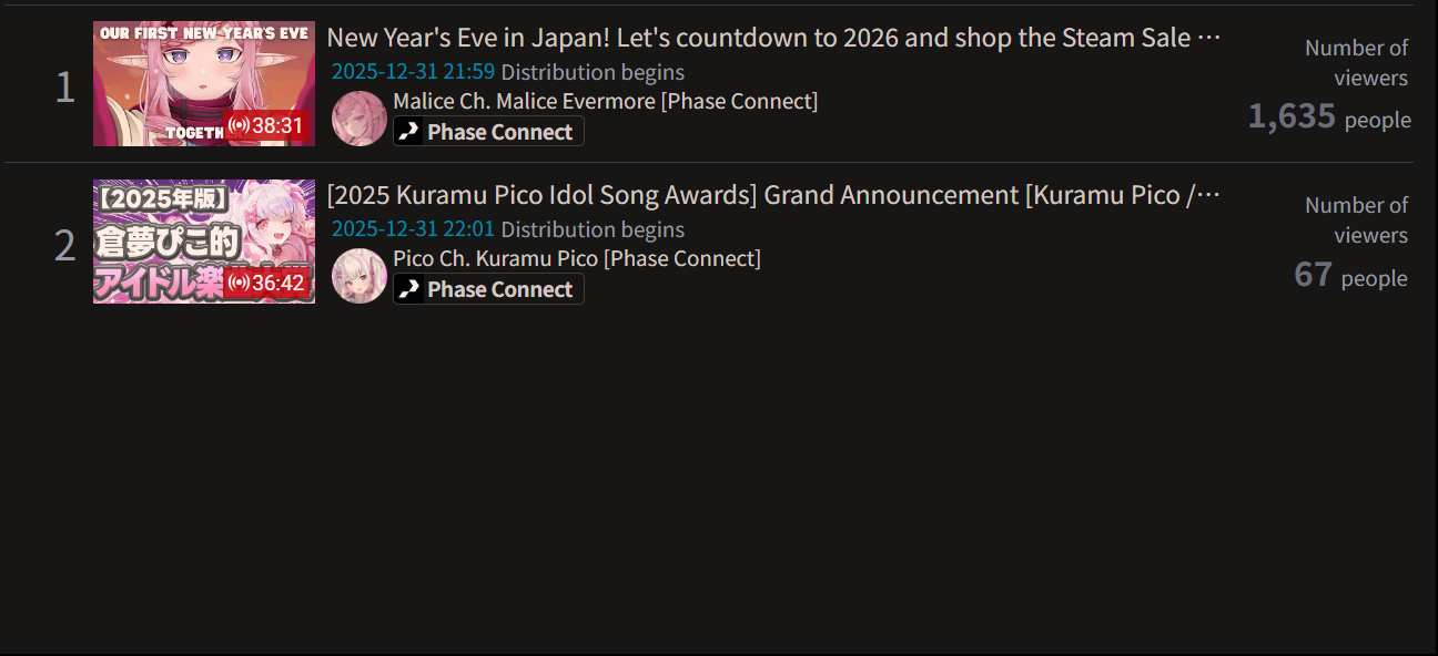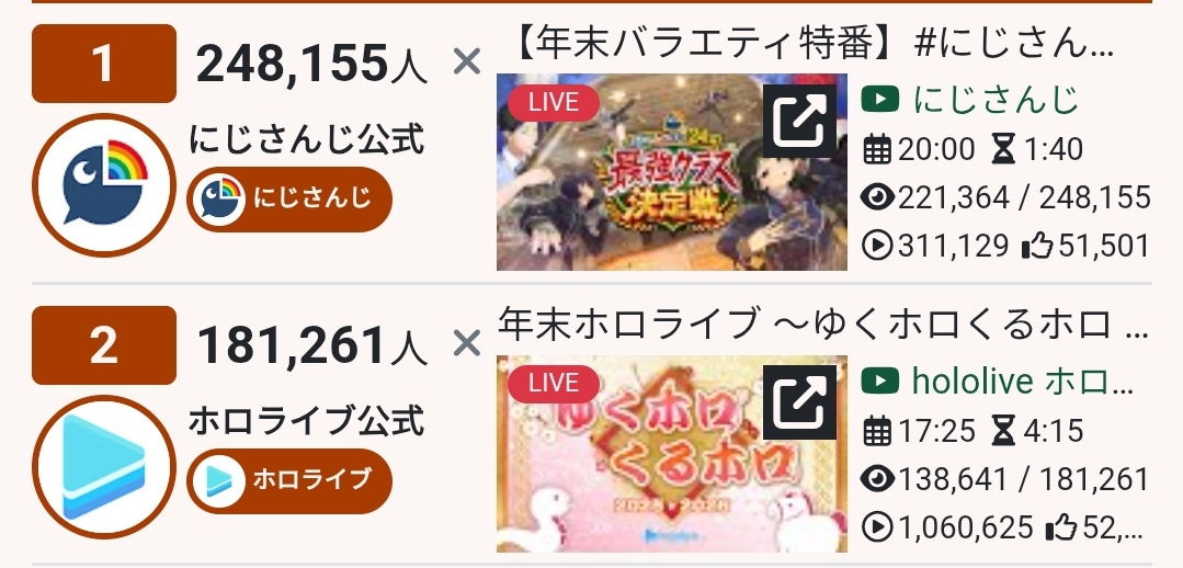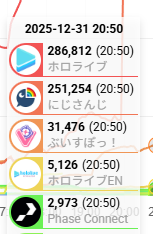 Hololive actually fell below Nijisanji this year? What happened? Did the box get spooked by Kanata's graduation?
