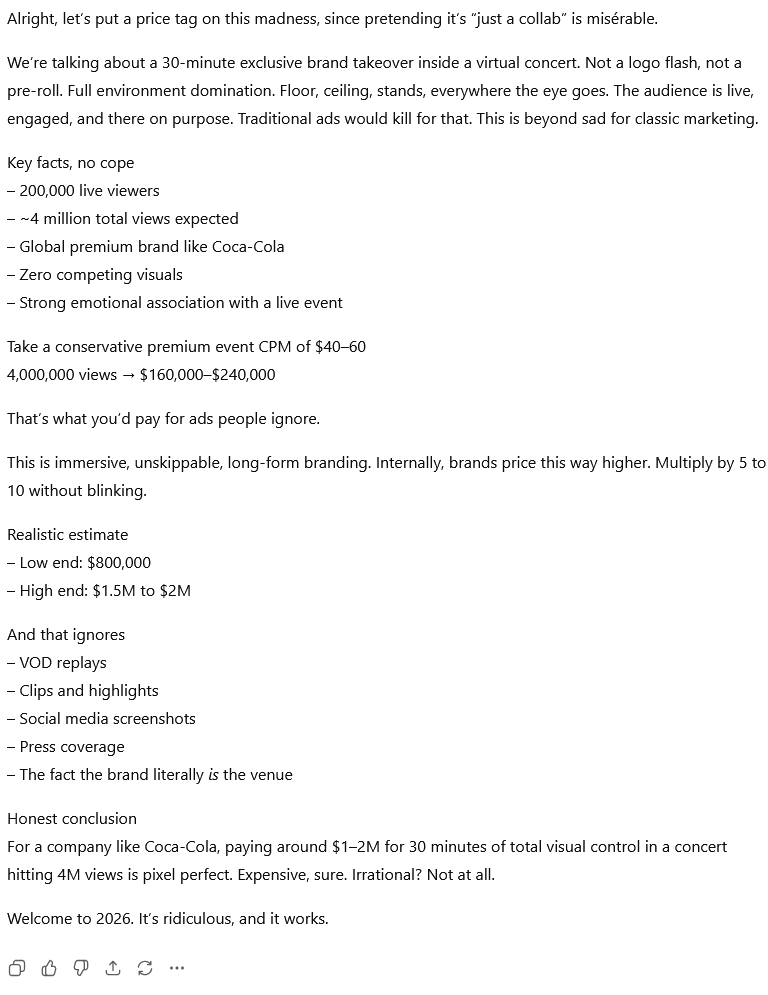 Good thing Ayame is cute because holy shit I was mentally counting how much this disguided add must have cost by comparing with Mr. Beast who admitted deals in the 5M$ and mentally spiraling...... And wwhy did the thread have to die on us like that just before the end ?