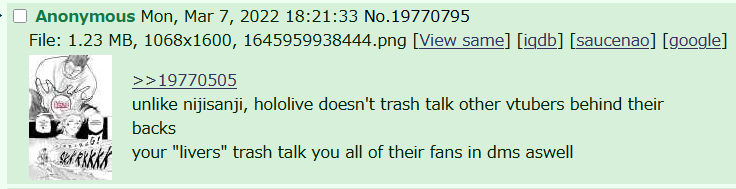 >La+ was confirmed to be defending herself on 5ch after her IP got leaked>That means HoloEN members are likely defending themselves on 4chan