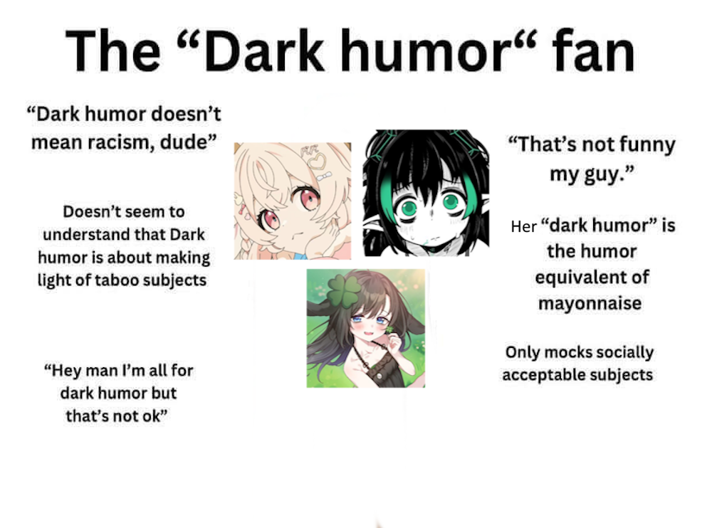 >>108207398Or a personality in general would be good. I don't know how menhera/political/shock fatigue isn't even more of a thing at this point ignoring casual normalfags and clipwatchers. It's this kind of laziness that ruined the writing for every genre under the fucking sun in every other entertainment medium.