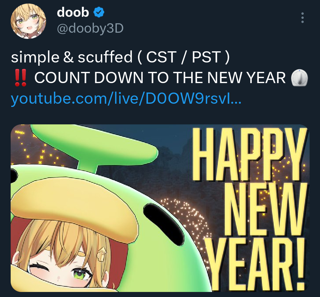 >>108215033The festivities are a bit boring when you're straight edge...Anyways, 30 minutes into the New Year! Happy, happy happy happy new year! hahahahahahah