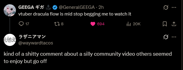 she was in vshojo and never heard or doesn't know who they are and because of that, unironically thinks they are grifters on the vshojo drama and used it to prop themselves and refuses to acknowledge them lmao