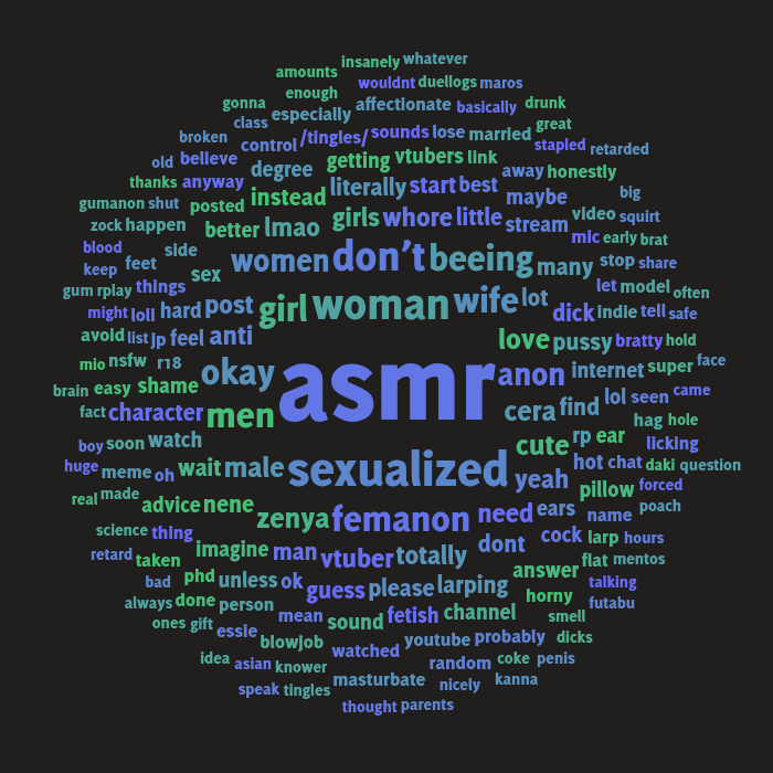>>108221692I will be completely honest with you, you cannot avoid being sexualized by men as a woman on the internet. You could be the most seiso vtuber in the world and someone will find the way you speak to be insanely attractive and will pump themselves raw to you. If you do not want to be sexualized I do not recommend getting into asmr unless you are completely faceless and not a vtuber, but even then the gooners will always eventually find you. men can literally masturbate to anything, I've been told about so many random fucking things males masturbate to like gregorian chants???? So I'm really sorry to burst your bubble but if it exists, it will be sexualized by a man and probably some women too. I am a sex pest as well in my own ways whoops. idk if this is like controversial to say but 99.9% of men have a woman fetish.