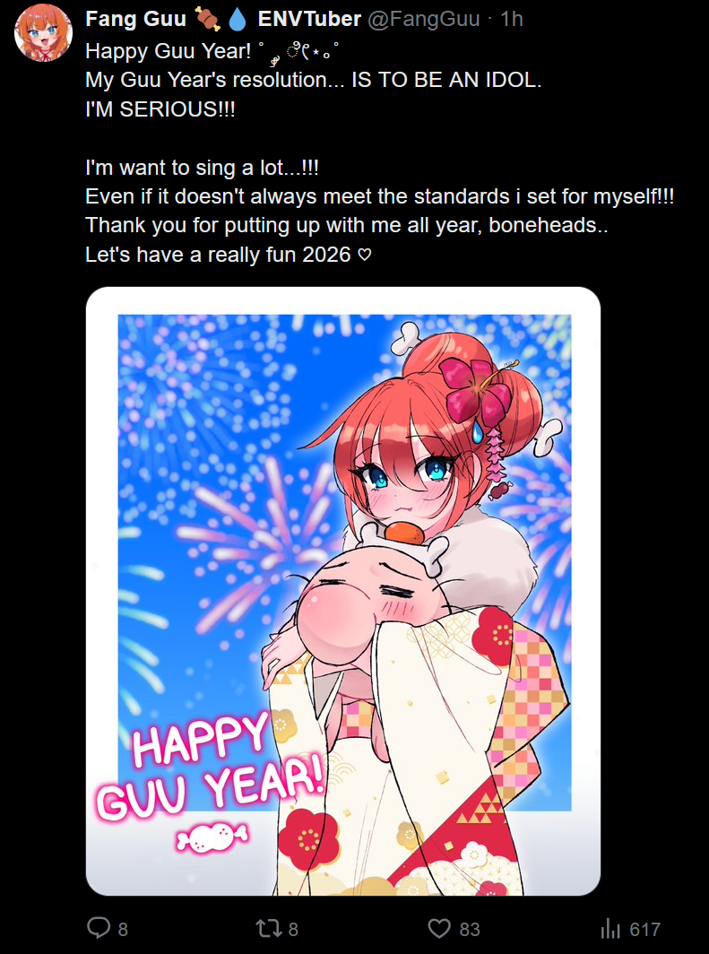 Hello Liggermen and Happy new year! I hope everyone is doing well today. A bit of a long night and still recovering from it, but it's time for /lig/ vtubers live!LIVE NOW:Neuro-Sama and ellie minibot: VR Chat>https://www.twitch.tv/vedal987Zentreya: Distance>https://www.twitch.tv/zentreyaCamila: Just Chatting>https://www.twitch.tv/camilaDokibird: Tour Of the Dokiland VR Map>https://www.youtube.com/watch?v=e8w55XYchG4Nyanners: Watching Reality TV Shows she found on youtube>https://www.twitch.tv/nyannersAlana: Just Chatting>https://www.twitch.tv/smugalanaRosedoodle: Just Chatting>https://www.twitch.tv/rosedoodleGeega: Yapping now, Nioh 2 later>https://www.twitch.tv/geegaSaiiren: Just Chatting>https://www.twitch.tv/saiirenFroggyloch: Just Chatting>https://www.twitch.tv/froggylochLumi: My Winter Car>https://www.twitch.tv/lumituberSavii: Marvel Rivals>https://www.twitch.tv/saviiCerber: A Fanmade Pokemon Romhack>https://www.twitch.tv/cerbervtSunny: Hollow Knight Silksong>https://www.twitch.tv/sunnysplosionImakuni: Having a Retro Games Marathon, is currently on Sonic Adventure X>https://www.twitch.tv/imakuniBeri: Just Chatting>https://www.twitch.tv/beribugFraiki: AGREEEEE>https://www.twitch.tv/fraikiPillow: Fortune Readings>https://www.youtube.com/watch?v=5fBrzfV4rpgPara: Horses>https://www.twitch.tv/parasiCallie calico: Look Outside>https://www.twitch.tv/calliecalicoIsaa: Chatting now, Handcam later>https://www.twitch.tv/isaaElara: Just Chatting>https://www.twitch.tv/elaraAnd more can be found on /vt/ list https://vt.rita.moe/?sort=viewersASC&tag=thread:/lig/Later tonight we have a Nimi stream, Lulu lasso with Fallout New Vegas, a coqui stream and likely many more! Regardless of your viewing decisions have a fantastic night my liggas and i will see you all next time