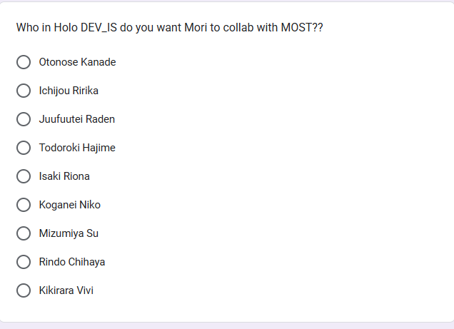 >>108240940No, I've seen this type of polling quite a bit from Mori on who she should collab more with. Its her standard way of checking what she should do.