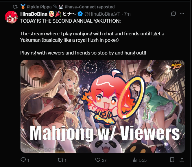 Pippa says you should watch Hiner Bobiner play mahjong https://www.twitch.tv/hinabobina
