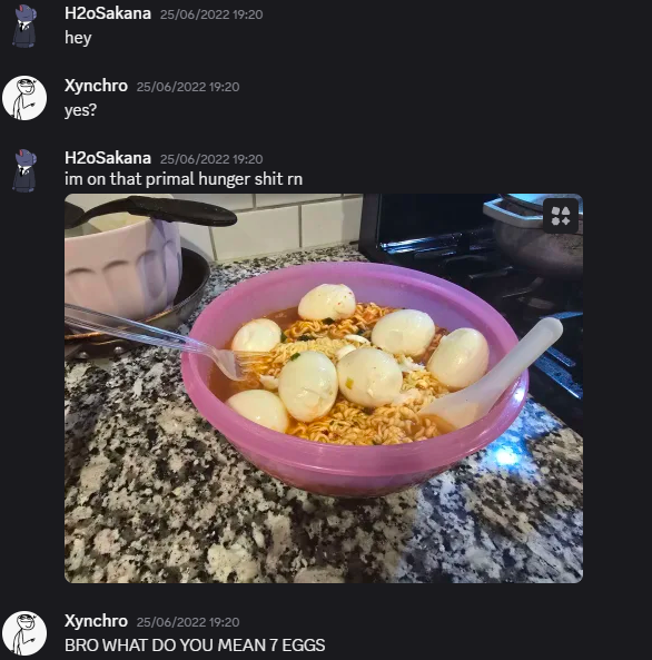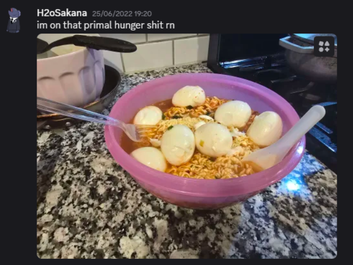 >ordered a medium pizza for pippa stream>ate the entire thing>watching saga collab>hungry againim gonna go make 3 packs of ramen and a few eggs