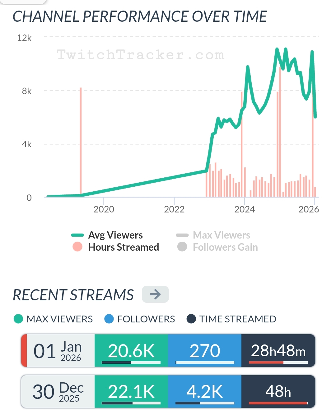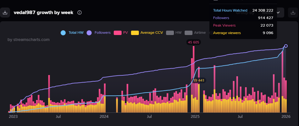 It seems like Twitch tracker is actively trying sabotaging the stats on Vedal987 channel by showing misinformation.