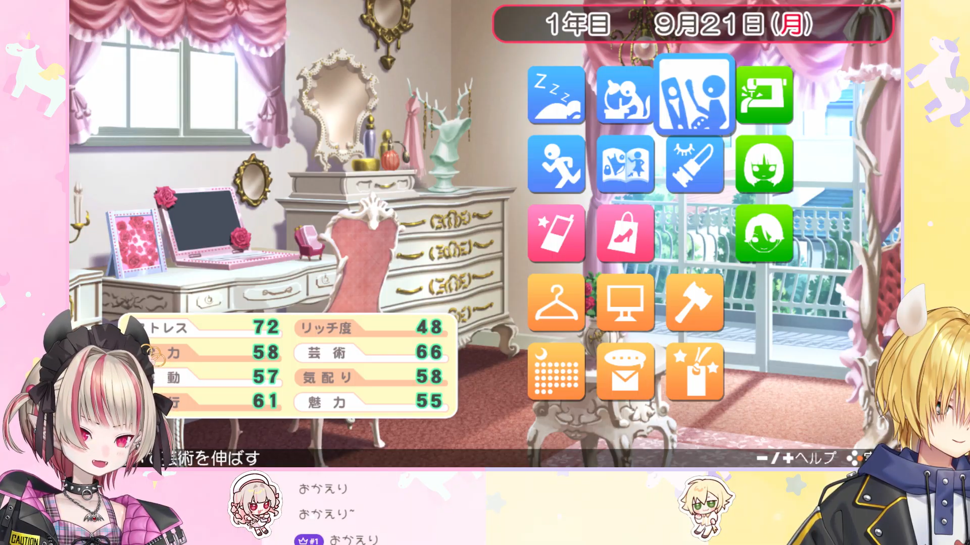 miyo told ririmu and kou they close to get next level at fashion miyo-chan like it any way they raise the charm stat too its important for romance too not having charm isnt good say kou they got a nice outfit and go on date with seiji but he was late too and didnt like the place he's not the type to apologize say ririmu he that type thats fine ririmu say she can be late too you can use that too for excuse they got more affection with him too there is also going to be Christmas party they need to buy some outfit there is kimono sale on the 23r but there also ruka doesnt like being invite around Christmas its suspicious maybe he's doing sus stuff it means he has a girl says ririmu surely its that