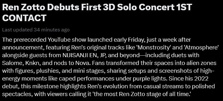You can tell they didn't even watch the concert, he literally started it by singing a song with several other nijiEN livers.
