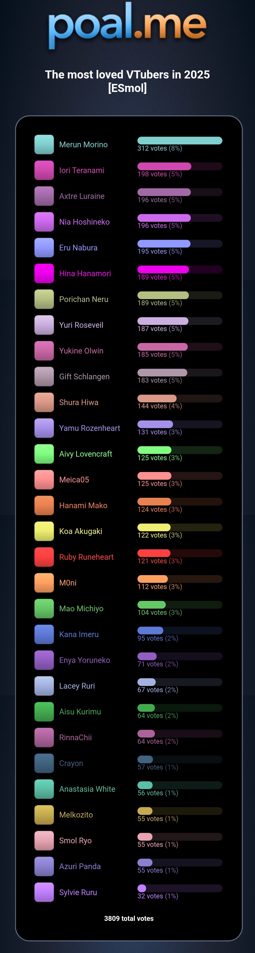 >>108256380Idiot, to avoid bots, 3 different polls were used, the first poll decided the top 1, the second poll the top 2 and the third poll the top 3 and the rest of the girls