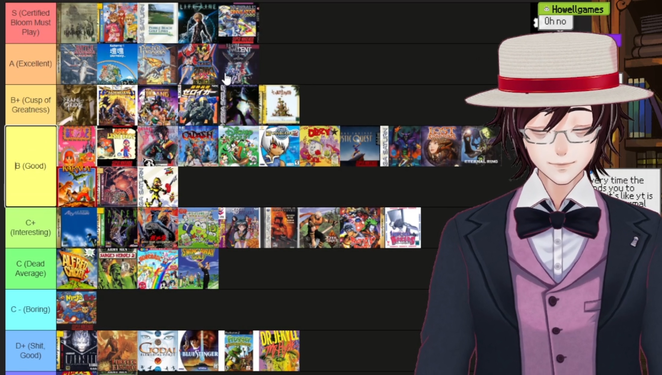Bloom is going through his tier list for games in 2025 https://www.twitch.tv/profbloomvtuber