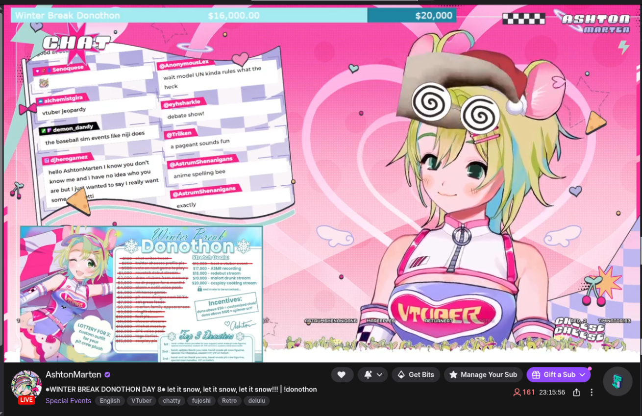 Ashton surpassed her original 15k goal and hit her first stretch goal at 16k:>Organise a Vtuber eventWhere she's going to invite all of her Vtuber friends