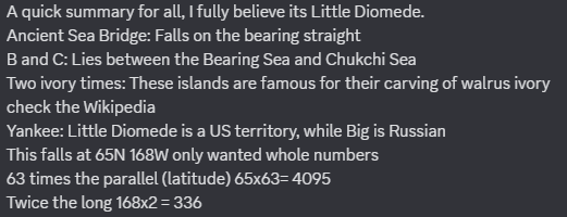 >>108281536No rounding, big diomede is -169 yes but the town on little diomede is -168.(9555). Wait its '-' wouldnt it be -4095 than for the in game cords?
