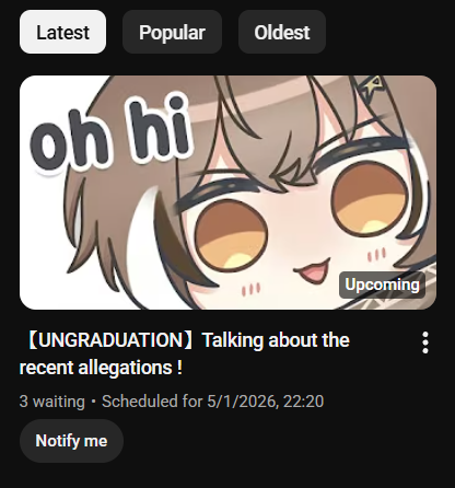 Previous thread: >>108113474--->【MV】ジェヘナ (Gehenna) 【IRyS x Mumei Cover】https://www.youtube.com/watch?v=9qkkPOD85YE>『Deep in Abyss』 Ninomae Ina'nis & Nanashi Mumei (Cover)https://www.youtube.com/watch?v=g83ppe-AiVY>「Cover」ただ声一つ / One Voice - Nanashi Mumeihttps://www.youtube.com/watch?v=HMRbQT5QEvY>「Cover」Gravity - Nanashi Mumeihttps://www.youtube.com/watch?v=XQnqXqWQ4Is>【cover】 モニタリング (Monitoring) / Anya Melfissa × Nanashi Mumeihttps://www.youtube.com/watch?v=KbzhNjS2XMA>【MV】Best Friend - Kana Nishino || preYdator COVERhttps://www.youtube.com/watch?v=3n1AThmEii8>「Cover」とんとんまーえ!- Nanashi Mumei & Inugami Koronehttps://www.youtube.com/watch?v=P6GLC_HnCUU>【Cover MV】Donut Hole / ドーナツホール - Ouro Kronii & Nanashi Mumeihttps://www.youtube.com/watch?v=UOYMqqk3quw>「Cover」アイドル / IDOL - Nanashi Mumei https://www.youtube.com/watch?v=Apgmr-SggVQ> It's Not a Phase - Nanashi Mumei & Ceres Faunahttps://www.youtube.com/watch?v=xxzw7-sCdnQ>【3D LIVE】「 Outside the Box 」Nanashi Mumei Birthday Celebration 2024https://www.youtube.com/watch?v=gl7CwlEg2ZI >Promise first group song - Our Promisehttps://www.youtube.com/watch?v=lcVyYmVOi1U >Mind Craft with HoloENhttps://www.youtube.com/watch?v=OQuGEpICY2o >Second original song - mumeihttps://www.youtube.com/watch?v=oA0CpI0vCK4 https://cover.lnk.to/Mumei>Holotori first original song - HOLOTORI Dance!https://www.youtube.com/watch?v=BcO9bZavHRg https://cover.lnk.to/HOTOLORIDance>Stellar Stellar (Hoshimachi Suisei)https://www.youtube.com/watch?v=ql0cz-62ff0 >List of Songs / Karaokeshttps://rentry.org/uoar4>Chapters, Clips & Music Videoshttps://rentry.org/Mumei-Karaoke>5th Feshttps://rentry.org/who_5thfes--->Youtube Channel:https://www.youtube.com/@NanashiMumei>Twitter:https://twitter.com/nanashimumei_en>Merch (Birthday merch 2024 order period ends 9th Sept. JST)https://rentry.org/who_merch_Reminder: >>1 Do not reply to bait and 'invitations' to doxxshit, shitstirring or dramafaggotry (the general jargon for these individuals are 'printers'). Be it inside AND outside the thread - hide, report and move on.