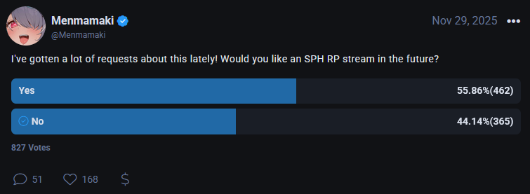 >>108367560>there won't be any m&c vocaroo from meno...