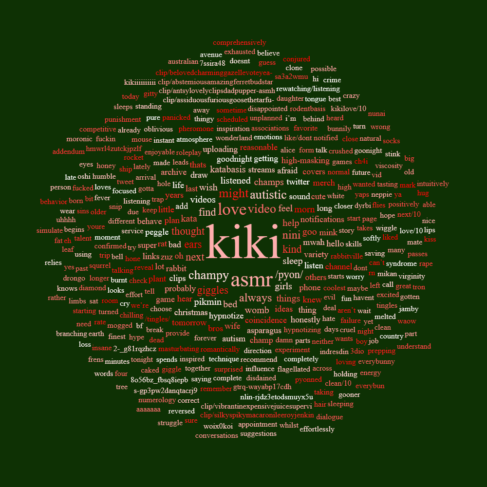 It's still Christmas for Kiki EDITIONThis thread is to discuss /vt/‘s very own Kiki.>LATEST STREAMhttps://youtu.be/T01GNWteOGM>Who is Kiki?Kiyomi Pyon-Pyon, or Kiki for short is an adorable autistic Aussie chuuba. She's a wicked bright, and super sweet girl with a passion for animals and her champyons!https://youtu.be/1vjStYtGkJshttps://youtu.be/PyeTpOgLWiY>Carrdhttps://kikipyonpyon.carrd.co/>Kiki Lore and Intro Videoshttps://youtu.be/W-bLrgrXdSghttps://youtu.be/eweZ2EDK7v4https://youtu.be/wxL2YkOhaMs>NEWEST KIKI CLIPShttps://youtu.be/2sd-aYoaOtghttps://youtu.be/YN_1OOVO7oohttps://youtu.be/EOkMNgZTzbE>KATABASIS WEBSITEhttps://katabasis.moe/>Merch (*NEW: Katabasis Merch, Soap, Butt Mousepad, Keychains, Stickers,* Deskmat, Magnets, Coasters, JP Snack Pack, Tapestry, Standee, Daki)https://memebars.com/collections/the-katabasis-collectionhttps://shop.moso.moe/kiki-pyon-pyon/https://weebe.net/shop/character-goods/keychains/kiki-pyon-pyon-baking-time-acrylic-keychain/ code: KATABASIS5 (5% off)https://www.capippalisttradeguild.com/product/13x19-print-kiki-feet-rishartist-/264https://www.capippalisttradeguild.com/product/9in-dakimakura-keychain-kiki-pyonpyon/263https://diipoo.com/shop/kiki-daki/>Danboorus, Aggie, & /i/ thread (Art/Fan Content)https://pyon.websitehttps://booru.rabbalabs.com/Previous Aggies: https://pyon.website/pools/1>>>/i/723670>Katabasis Covers:https://youtu.be/JB6GhjWT4lshttps://www.youtube.com/watch?v=BgzyBpO8Oukhttps://www.youtube.com/watch?v=vu7a6PjiSpohttps://www.youtube.com/watch?v=62Z2a4f6k7k>Kiki's Covers and Songshttps://youtu.be/xwHH28JFrnUhttps://youtu.be/2tPTie7UmyUhttps://youtu.be/Zpdu7yFk1tAhttps://youtu.be/24K-LkEhLqkhttps://youtu.be/8v9OUHzxy_ohttps://youtu.be/7JSSOnss85Yhttps://youtu.be/FzMJ0LWTUYQhttps://youtu.be/TXi-SDZJEwEhttps://youtu.be/XLKYnOALHac>ASMR Collection, Voicepacks & AI LoRAshttps://rentry.org/7uqu8mvq>/pyon/ Cytube (Community Watchalongs):https://stream.rabbalabs.com/r/pyon>Kiki Notifications RSS feed w/ instructionshttps://rabbalabs.com/rss/feed.xmlhttps://pastebin.com/nGsaGEZh>Misc. Rabbalabs links (timestamp tagger, VOD search, /pyon/ archive)https://rabbalabs.com/tagger/https://rabbalabs.com/vods/https://rabbalabs.com/pyondex/>/pyon/craft serverhttps://rentry.org/pyoncraftguide>Champy Creative CornerChampy Creations playlist: https://www.youtube.com/playlist?list=PLuUil1VBO4o7PpCUPwTKvj_4l7UBE8toPMusic (Kikikore): https://www.youtube.com/playlist?list=PLuUil1VBO4o5iNrFvZm8eMQGtj9xnacjMKiki Ambient Album: https://drive.google.com/file/d/18C-GvhOs5uG90xx4Et-yIF2QJHSUV0Eg/viewAnimations: https://www.youtube.com/playlist?list=PLuUil1VBO4o4TyrbqW87D2aygzbUMLMVsKiki Koikatsu Archive: https://mega.nz/folder/Bx4XXYTb#o7L7D5bg4XverGHQ03upkQKiki Noises Sound Effects Library: https://mega.nz/folder/LnRjWaoL#UL6z0KJcBwRPBapmRdAg2QKikinese: https://files.catbox.moe/yv1xre.pdfKiki Doom 2 WAD: https://files.catbox.moe/pd9lr9.zip/pyon/ Worms game: https://mega.nz/folder/46VjwSRS#DihAVX2GfbOvMiY0X_1nEASuper Champ Bros (SMB rom hack): https://files.catbox.moe/0tbbps.zipAoE2 Kiki civ mod: https://www.ageofempires.com/mods/details/316335/https://www.ageofempires.com/mods/details/316395/Kiki DoW Banners/Badges: https://files.catbox.moe/n6qe1d.zip/pyon/ Tetris: https://seburd.itch.io/tetrispyon>Related places>>>/vt//freak/ >>>/vt//vrt/>Last thread>>108341108