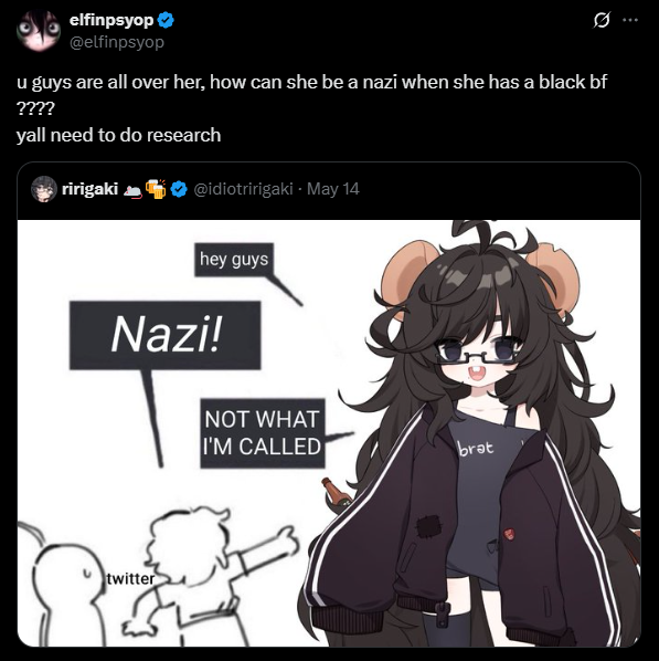 >>108393738Well elfin has a secret bf, but he's white. Does that make it better?