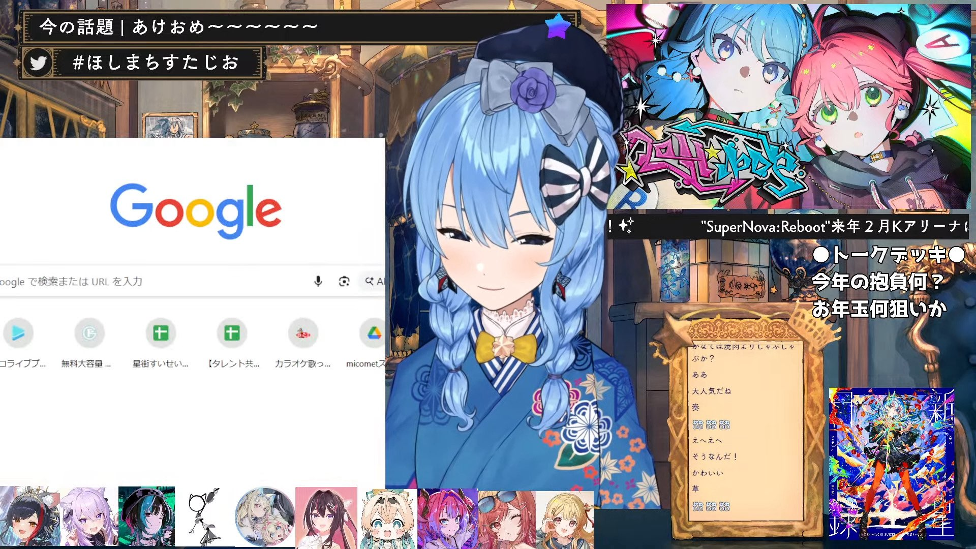 I have two proposals for the Supernova reboot message board.Exhibit 1 (Same suigremlincry as last year, with some changes such as including this concert's fan kit)https://files.catbox.moe/o9qoej.pngExhibit 2 (added blur effect to emphasize the scream)https://files.catbox.moe/ld6b3u.pngExhibit 3 (anemachi and takoyaki pointing at suicreatura, leaves room for some free text, not much else)https://files.catbox.moe/4l84nq.pngI'm open for suggestions.Btw if you guys want me to assemble a new suibingo for this year, let me know, but throw some ideas will ya.