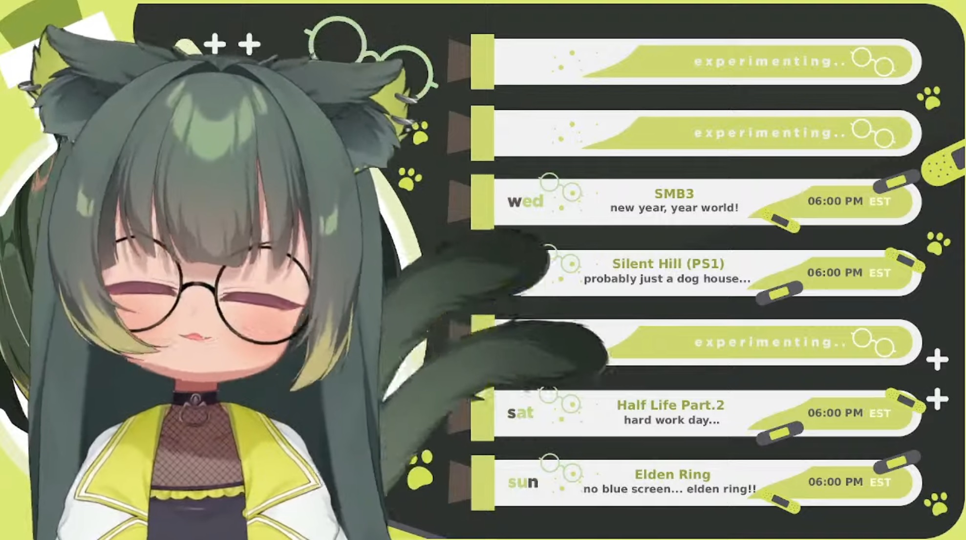 >>108423153Ongoing StreamsKira is playing Dragon Quest 1 for the SFChttps://www.youtube.com/watch?v=ewKGSIx5E-sMofuru is playing Dragon Quest 3https://www.youtube.com/watch?v=M-H91P8q4w4Mivi Aivori is playing Freddi Fish and the Case of the Missing Kelp Seedshttps://www.youtube.com/watch?v=VM8gcXX1JnMHamu is playing Mega Man X 1 and planning to play it until she beats ithttps://www.youtube.com/watch?v=qRgn_Vik5WYAsahina Meiko is playing Kirby's Super Starhttps://www.youtube.com/watch?v=38YwyLTVSJgActi Matatabi is playing Super Mario Bros 3https://www.youtube.com/watch?v=GGgmUWnMmCQPlum Rose is playing The Legend of Zelda The Wind Wakerhttps://www.youtube.com/watch?v=-FPSPC2cVeMCup the Kitsune is playing The Legend of Zelda Ocarina of Timehttps://www.youtube.com/watch?v=duMiI5dmv3cBusujima Bibi is playing The Legend of Zelda Ocarina of Timehttps://www.twitch.tv/busujimabibiMyu Abyssos is playing The Legend of Zelda Twilight Princesshttps://www.twitch.tv/myuabyssosPrimrose is playing 1080° Snowboardinghttps://www.twitch.tv/late_primroseLemon is playing Doom 2https://www.twitch.tv/lemon_773Misha Pyon is playing Bioshock 1https://www.twitch.tv/mishapyonKiki is playing Pikminhttps://www.twitch.tv/kikipyonpyonMilk is playing Pikminhttps://www.twitch.tv/milkuolsTsukihisa Ao is playing Super Mario Sunshinehttps://www.twitch.tv/tsukihisa_aoSobu is playing Mario & Luigi Superstar Sagahttps://www.twitch.tv/sobuuoTraveler Aria is playing Chulip with Gpoolhttps://www.twitch.tv/travelerariaEnatsu Shiroi is playing Arcanum: of Steamworks and Magick Obscurahttps://www.twitch.tv/enatsushiroi