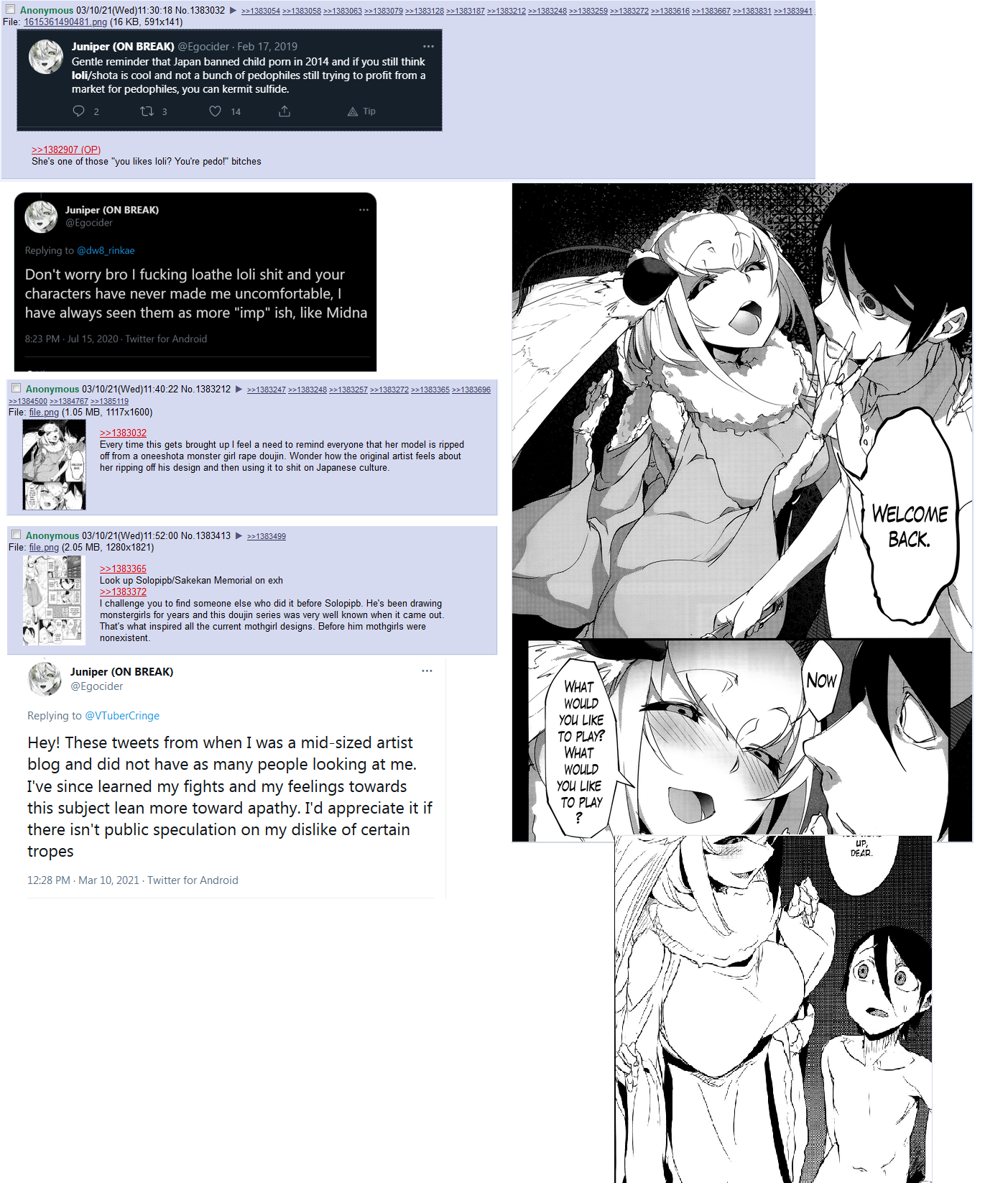 >>108439195>i half expect any given juniper post to be replied to with that decade old anti-loli tweetWell, did she do a naked dogeza and asked for forgiveness for her transgressions? No? Well then.