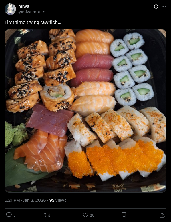 >>108447069Sushi isn't real food so that's practically nothing.