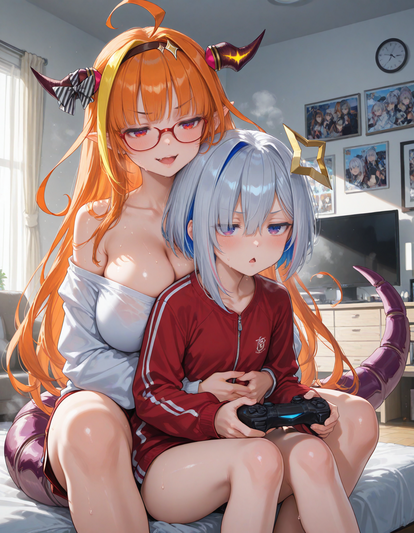 >>108451739oh man please make more, like peeping or catching them in the act, from using just their hands and fingers to being really slutty with multiple toys