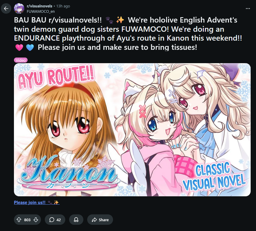 >>108455923Just the fact that members played it on stream is already a big boost