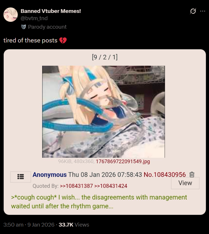 >>108449593It's deforming, every month that passes it takes on a more gross and bloated form.But at the same time it's not working anymore, NijiEN is getting pumped up day after day hour after hour and they can barely get to 1000.