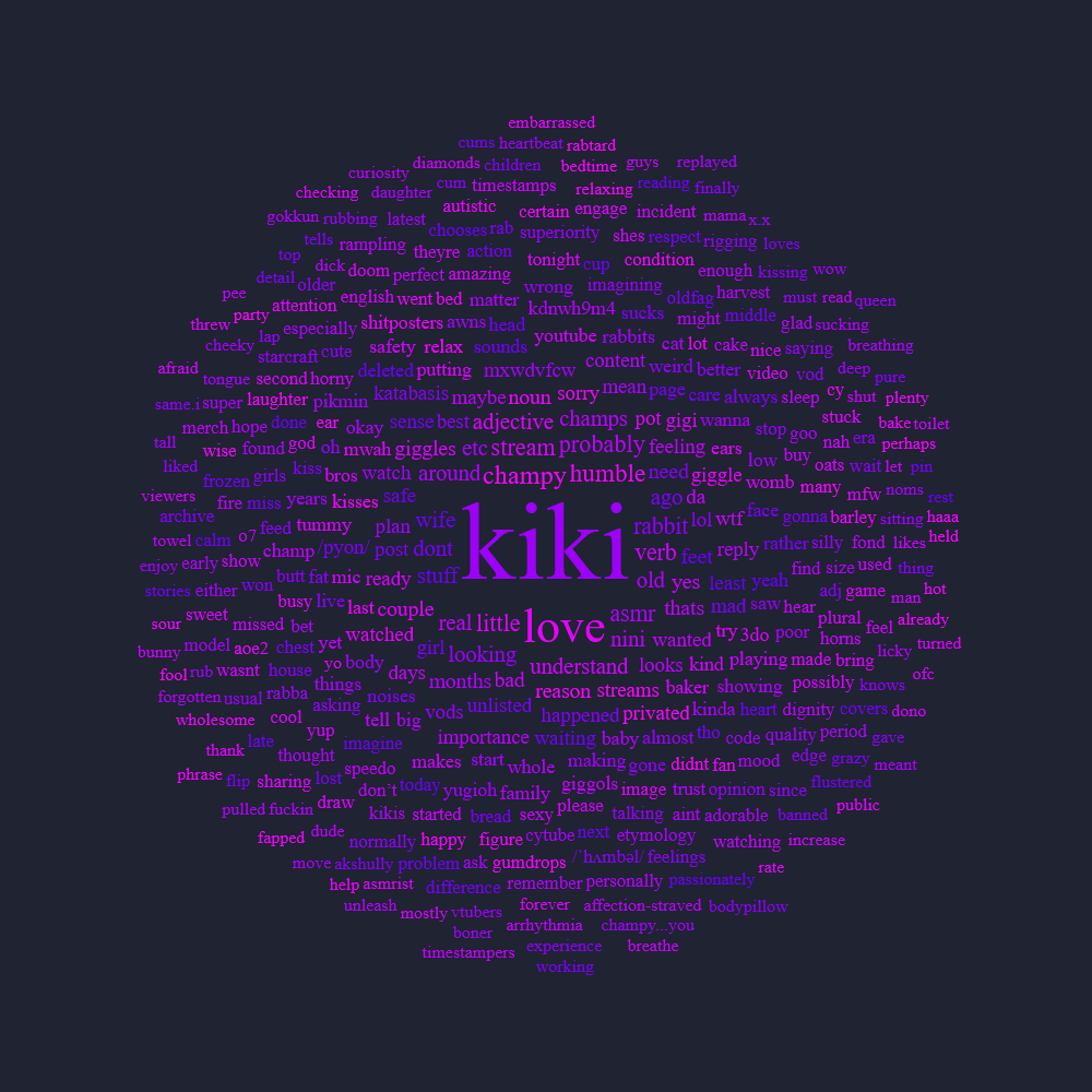 Apply Rabbit Directly to Cheek EditionThis thread is to discuss /vt/‘s very own Kiki.>LIVEhttps://www.youtube.com/watch?v=-dYKdNWh9M4>Who is Kiki?Kiyomi Pyon-Pyon, or Kiki for short is an adorable autistic Aussie chuuba. She's a wicked bright, and super sweet girl with a passion for animals and her champyons!https://youtu.be/1vjStYtGkJshttps://youtu.be/PyeTpOgLWiY>Carrdhttps://kikipyonpyon.carrd.co/>Kiki Lore and Intro Videoshttps://youtu.be/W-bLrgrXdSghttps://youtu.be/eweZ2EDK7v4https://youtu.be/wxL2YkOhaMs>NEWEST KIKI CLIPShttps://youtu.be/2sd-aYoaOtghttps://youtu.be/YN_1OOVO7oohttps://youtu.be/EOkMNgZTzbE>KATABASIS WEBSITEhttps://katabasis.moe/>Merch (*NEW: Katabasis Merch, Soap, Butt Mousepad, Keychains, Stickers,* Deskmat, Magnets, Coasters, JP Snack Pack, Tapestry, Standee, Daki)https://memebars.com/collections/the-katabasis-collectionhttps://shop.moso.moe/kiki-pyon-pyon/https://weebe.net/shop/character-goods/keychains/kiki-pyon-pyon-baking-time-acrylic-keychain/ code: KATABASIS5 (5% off)https://www.capippalisttradeguild.com/product/13x19-print-kiki-feet-rishartist-/264https://www.capippalisttradeguild.com/product/9in-dakimakura-keychain-kiki-pyonpyon/263https://diipoo.com/shop/kiki-daki/>Danboorus, Aggie, & /i/ thread (Art/Fan Content)https://pyon.websitehttps://booru.rabbalabs.com/Previous Aggies: https://pyon.website/pools/1>>>/i/723670>Katabasis Covers:https://youtu.be/JB6GhjWT4lshttps://www.youtube.com/watch?v=BgzyBpO8Oukhttps://www.youtube.com/watch?v=vu7a6PjiSpohttps://www.youtube.com/watch?v=62Z2a4f6k7k>Kiki's Covers and Songshttps://youtu.be/xwHH28JFrnUhttps://youtu.be/2tPTie7UmyUhttps://youtu.be/Zpdu7yFk1tAhttps://youtu.be/24K-LkEhLqkhttps://youtu.be/8v9OUHzxy_ohttps://youtu.be/7JSSOnss85Yhttps://youtu.be/FzMJ0LWTUYQhttps://youtu.be/TXi-SDZJEwEhttps://youtu.be/XLKYnOALHac>ASMR Collection, Voicepacks & AI LoRAshttps://rentry.org/7uqu8mvq>/pyon/ Cytube (Community Watchalongs):https://stream.rabbalabs.com/r/pyon>Kiki Notifications RSS feed w/ instructionshttps://rabbalabs.com/rss/feed.xmlhttps://pastebin.com/nGsaGEZh>Misc. Rabbalabs links (timestamp tagger, VOD search, /pyon/ archive)https://rabbalabs.com/tagger/https://rabbalabs.com/vods/https://rabbalabs.com/pyondex/>/pyon/craft serverhttps://rentry.org/pyoncraftguide>Champy Creative CornerChampy Creations playlist: https://www.youtube.com/playlist?list=PLuUil1VBO4o7PpCUPwTKvj_4l7UBE8toPMusic (Kikikore): https://www.youtube.com/playlist?list=PLuUil1VBO4o5iNrFvZm8eMQGtj9xnacjMKiki Ambient Album: https://drive.google.com/file/d/18C-GvhOs5uG90xx4Et-yIF2QJHSUV0Eg/viewAnimations: https://www.youtube.com/playlist?list=PLuUil1VBO4o4TyrbqW87D2aygzbUMLMVsKiki Koikatsu Archive: https://mega.nz/folder/Bx4XXYTb#o7L7D5bg4XverGHQ03upkQKiki Noises Sound Effects Library: https://mega.nz/folder/LnRjWaoL#UL6z0KJcBwRPBapmRdAg2QKikinese: https://files.catbox.moe/yv1xre.pdfKiki Doom 2 WAD: https://files.catbox.moe/pd9lr9.zip/pyon/ Worms game: https://mega.nz/folder/46VjwSRS#DihAVX2GfbOvMiY0X_1nEASuper Champ Bros (SMB rom hack): https://files.catbox.moe/0tbbps.zipAoE2 Kiki civ mod: https://www.ageofempires.com/mods/details/316335/https://www.ageofempires.com/mods/details/316395/Kiki DoW Banners/Badges: https://files.catbox.moe/n6qe1d.zip/pyon/ Tetris: https://seburd.itch.io/tetrispyon>Related places>>>/vt//freak/ >>>/vt//vrt/>Last thread>>108445159