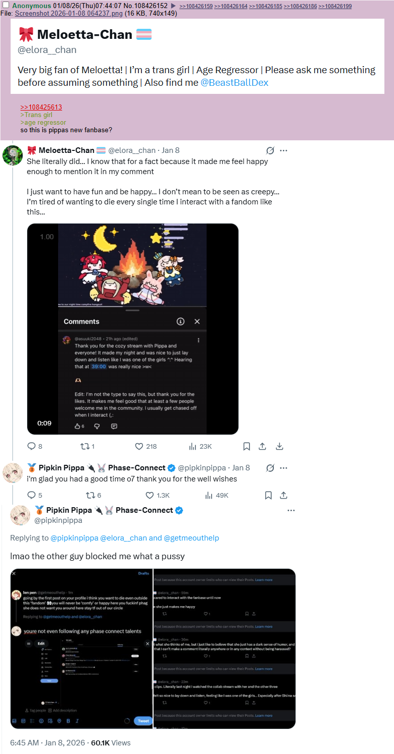 >>108510425Are you one of those people who have been shitting up every thread and shit on every phase talent, especially Pippa?