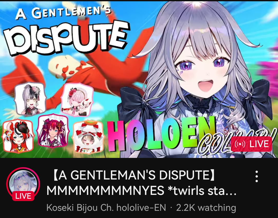 >>108540899>Vicky needed way more help than Holo to establish a foothold>Mori is done with Hololive >DensetsuEXE is shadow managed by CoverPick one
