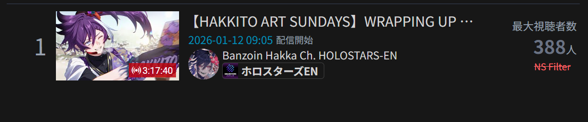 >>108534640JAN 2026 EN SILVER1/1 - Bijou - Unarchived Karaoke Relay: 11,8381/2 - Gigi - Agree: 10,0421/3 - Gigi - Color Tierlist: 11,3741/4 - Gigi - RV There Yet: 9,6011/5 - Nerissa - 950k Subscriber Celebration: 5,7291/6 - IRyS - Powerwash Simulator 2: 38,0441/7 - Calliope - Unarchived Karaoke: 10,0891/8 - Cecilia - Dark Souls 3: 8,9871/9 - IRyS - Warframe: 14,3501/10 - Raora - Agree: 9,4131/11 - Calliope - Drinking Stream: 12,345 (wow)PER COMPANY11x: Hololive EnglishPER STREAMER3x: Gigi2x: IRyS, Calliope1x: Raora, Cecilia, Bijou, Nerissa