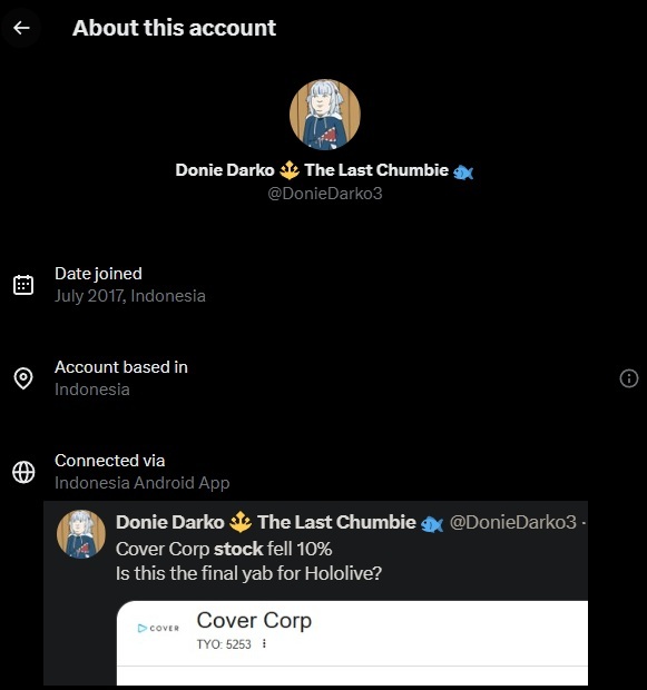 >>108540792Another reason why I said it doesn't matter if I share sources because you are a typical holodrone and won't care unless it's en.Also that Yagoo tweet. Yeah either him or Miko will leave after this.