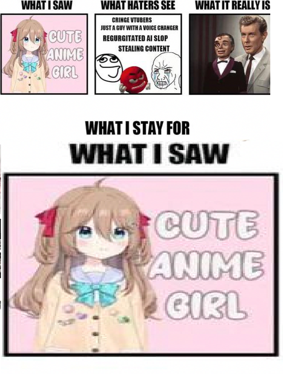 >>108539861The Neuro-sama General is a sanctuary for the AI, not a waiting room for the leeches you call "Neuroverse". If you want to discuss Toma, go to her thread. Oh, wait, does she not have one active? Is that why you are squatting here? You are using Neuro's house to host a party for your irrelevant whores because you know they cannot pull an audience on their own.