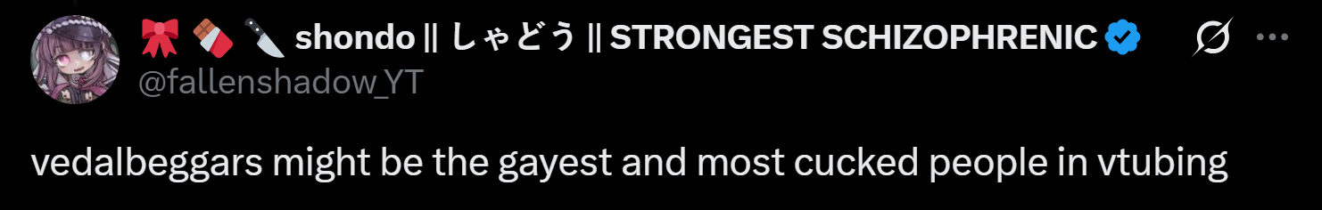 >>108551941Why do i care as a viewer? I can only assume you are a jealous 2 view