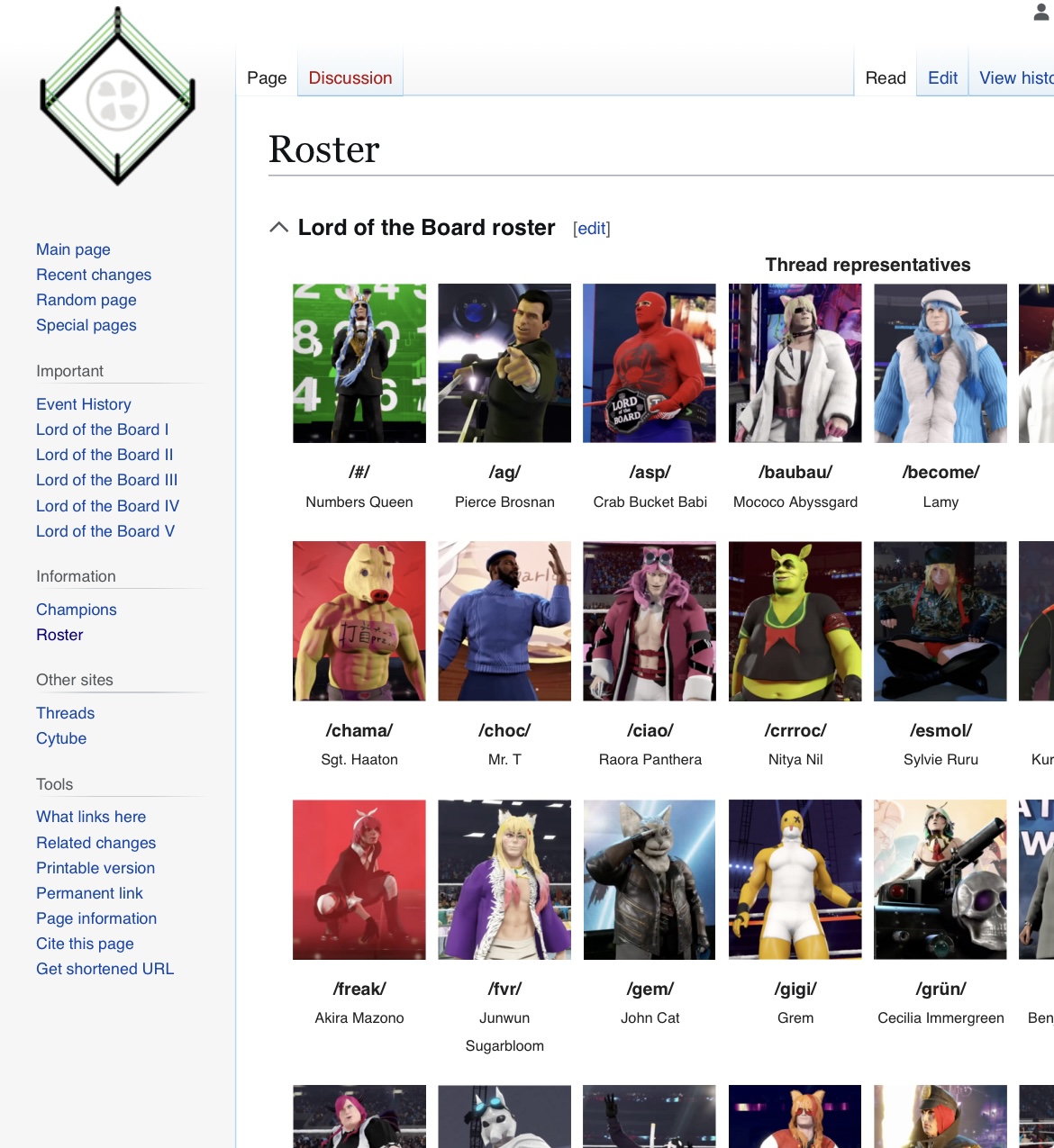 >>108562193Roster Page is up and almost donehttps://lordoftheboard.miraheze.org/wiki/Roster