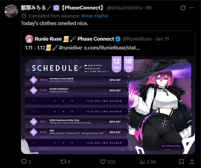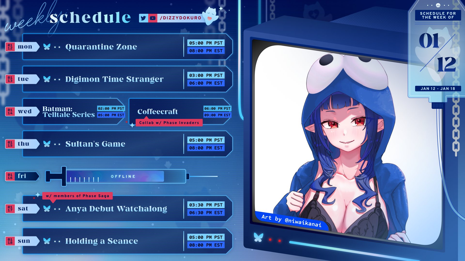 ▼ Phase Connect LinksOfficial Website: https://phase-connect.comOfficial Schedule: https://schedule.phase-connect.comOfficial Twitter: https://x.com/PhaseConnect | https://x.com/PhaseConnectJPOfficial Character References: https://rentry.org/pcgreferencesOfficial Twitch Archive Channels: https://rentry.org/pcgtwitcharchiveUnofficial Phase Connect Archives: https://rentry.org/pcgunofficialarchive––––––––––––––––––––––––––––––––––◆【Lia】https://x.com/rinkouashelia | https://youtube.com/RinkouAshelia | https://twitch.tv/asheliarinkou◆【Utatane Nasa】転寝ナサ (JP) https://x.com/UtataneNasa | https://youtube.com/UtataneNasa | https://twitch.tv/utatanenasa◆【Hakushika Iori】白鹿いおり (JP + EN) https://x.com/hakushikaiori | https://youtube.com/HakushikaIori | https://twitch.tv/iorihakushika◆【Fujikura Uruka】https://x.com/fujikurauruka | https://youtube.com/FujikuraUruka | https://twitch.tv/fujikurauruka◆【Shisui Michiru】紫翠みちる (JP) https://x.com/shisuimichiru | https://youtube.com/ShisuiMichiru | https://twitch.tv/michiru_shisui◆【Tenma Maemi】https://x.com/tenmamaemi | https://youtube.com/TenmaMaemi | https://twitch.tv/tenma◆【Pipkin Pippa】https://x.com/pipkinpippa | https://youtube.com/PipkinPippa | https://twitch.tv/pippa––––––––––––––––––––––––––––––––––◆【Kaneko Lumi】https://x.com/kaneko_lumi | https://youtube.com/KanekoLumi | https://twitch.tv/kanekolumi◆【Fuura Yuri】[Terminated] https://x.com/AmarisYuri | Archive: https://youtube.com/@TheNationalFuuraYuriArchive◆【Dizzy Dokuro】https://x.com/dizzydokuro | https://youtube.com/@dizzydokuro | https://twitch.tv/dizzydokuro◆【Jelly Hoshiumi】https://x.com/jellyhoshiumi | https://youtube.com/@jellyhoshiumi | https://twitch.tv/jellyhoshiumi◆【Ember Amane】https://x.com/emberamane | https://youtube.com/@EmberAmane | https://twitch.tv/emberamane◆【Clio Aite】https://x.com/ClioAite | https://youtube.com/@ClioAite | https://twitch.tv/clioaite◆【MariMari_en】https://x.com/MARIMARI_EN | https://youtube.com/@MARIMARI_EN | https://twitch.tv/marimari_en◆【Eepy Sleepy】https://x.com/EepySleepyCh | https://youtube.com/@EepySleepyCh | https://twitch.tv/EepySleepy––––––––––––––––––––––––––––––––––◆【Remilia Nephys】https://x.com/Remilia_Nephys | https://youtube.com/RemiliaNephys | https://twitch.tv/remilianephys◆【Chisaka Airi】https://x.com/ChisakaAiri | https://youtube.com/ChisakaAiri | https://twitch.tv/chisakaairi◆【Amanogawa Shiina】https://x.com/AmanogawaShiina | https://youtube.com/AmanogawaShiina | https://twitch.tv/amanogawashiina◆【Himemiya Rie】https://x.com/HimemiyaRie | https://youtube.com/HimemiyaRie | https://twitch.tv/himemiyarie◆【Erina Makina】https://x.com/ErinaMakina | https://youtube.com/ErinaMakina | https://twitch.tv/erinamakina◆【Komachi Panko】https://x.com/komachipanko | https://youtube.com/KomachiPanko | https://twitch.tv/komachipanko––––––––––––––––––––––––––––––––––◆【Runie Ruse】https://x.com/RunieRuse | https://youtube.com/@RunieRuse | https://twitch.tv/RunieRuse◆【Eimi Isami】https://x.com/eimiisami | https://youtube.com/@eimiisami | https://twitch.tv/eimiisami◆【Muu Muyu】https://x.com/Muu_Muyu | https://youtube.com/@MuuMuyu | https://twitch.tv/MuuMuyu◆【Hikanari Hina】https://x.com/HikanariHina | https://youtube.com/@HikanariHina | https://twitch.tv/HikanariHina◆【Saya Sairroxs】[Hort] https://x.com/sayasairroxs | https://youtube.com/@sayasairroxs | https://twitch.tv/sayasairroxs––––––––––––––––––––––––––––––––––◆【Kannagi Loki】巫ロキ (JP) https://x.com/kannagiloki | https://youtube.com/@kannagiloki ◆【Kokoromo Memory】恋衣めもり (JP) https://x.com/kokoromomemory | https://youtube.com/@kokoromomemory_ | https://twitch.tv/kokoromomemory◆【Gram Pico】倉夢ぴこ (JP) https://x.com/grampico_ | https://youtube.com/@grampico | https://twitch.tv/grampico◆【Ayase Yuu】絢世ユウ (JP) https://x.com/ayaseyuuu | https://youtube.com/@ayaseyuu | https://twitch.tv/ayaseyuu_◆【Kaminari Clara】歌美鳴クララ (EN + JP) https://x.com/kaminariclara_ | https://youtube.com/@kaminariclara | https://twitch.tv/kaminariclara––––––––––––––––––––––––––––––––––◆【Malice Evermore】https://x.com/MaliceEvermore | https://youtube.com/@maliceevermore | https://twitch.tv/maliceevermore◆【Nitya Nil】https://x.com/Nitya_Nil | https://youtube.com/@Nitya_Nil | https://twitch.tv/nitya_nil◆【Wilhelmina Frost】https://x.com/wilhelminafr0st | https://youtube.com/@wilhelminafrost | https://twitch.tv/wilhelminafrost◆【Bibi Biscuit】https://x.com/BibiBiscuitCh | https://youtube.com/@bibibiscuitch | https://twitch.tv/bibibiscuitch◆【Anya Nyabyss】https://x.com/AnyaNyabyss | https://youtube.com/@AnyaNyabyss | https://twitch.tv/anyanyabyss◆【Sinon Sinfonia】https://x.com/SinonSinfonia | https://youtube.com/@SinonSinfonia | https://twitch.tv/sinonsinfoniaPrevious Thread: >>108552100