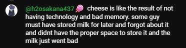 >>108557225i mean hes not wrong but i thought that the cheese origin theory was that because they used animal stomachs as containers for liquid that the left over gut bacteria turned the milk into cheese